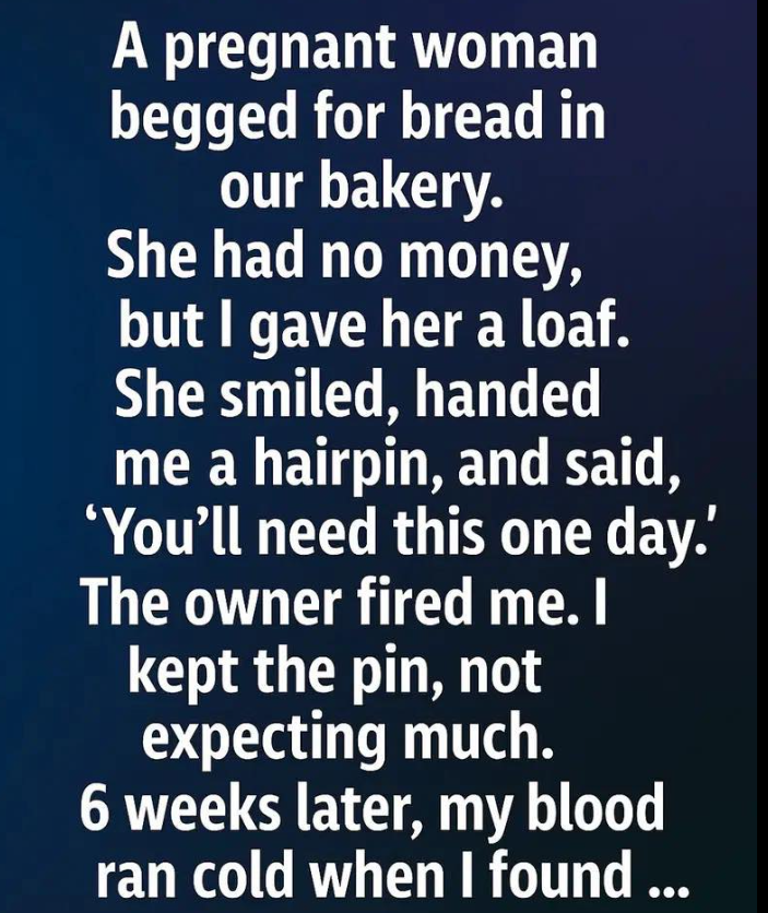 It was an ordinary morning in the small bakery where I worked — the kind of day that smelled of warm bread and quiet routine. I was wiping down the counter when the doorbell chimed, and a young woman stepped inside, soaked from the rain. Her clothes were worn, her eyes tired, and one hand rested protectively on her rounded belly.