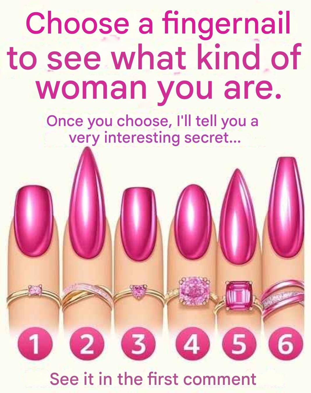 We’ll show you an illustration. Look closely at some of the nail designs, which often reflect your personality. You’ll have to choose only one of the six options. This will help you get closer to the answer.