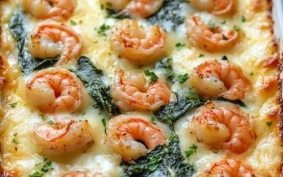 his creamy, cheesy gratin is a luxurious yet simple dish that brings together succulent shrimp, fresh spinach, and rich Gruyère…