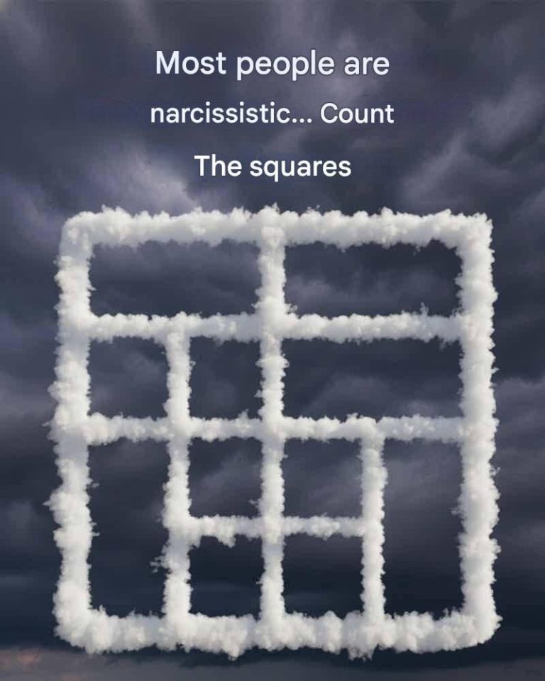 A small visual puzzle is circulating on the internet: it shows only a cloud silhouette filled with a square grid. It often appears accompanied by a striking statement: “Most people are narcissistic,” followed by the challenge: “Count the squares.”