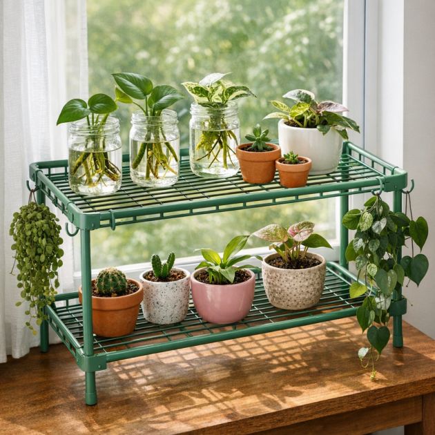 For a decorative touch, paint the rack in a color that complements your decor or add small hooks to hang trailing plants. This creates a visually appealing display while promoting healthy plant growth.